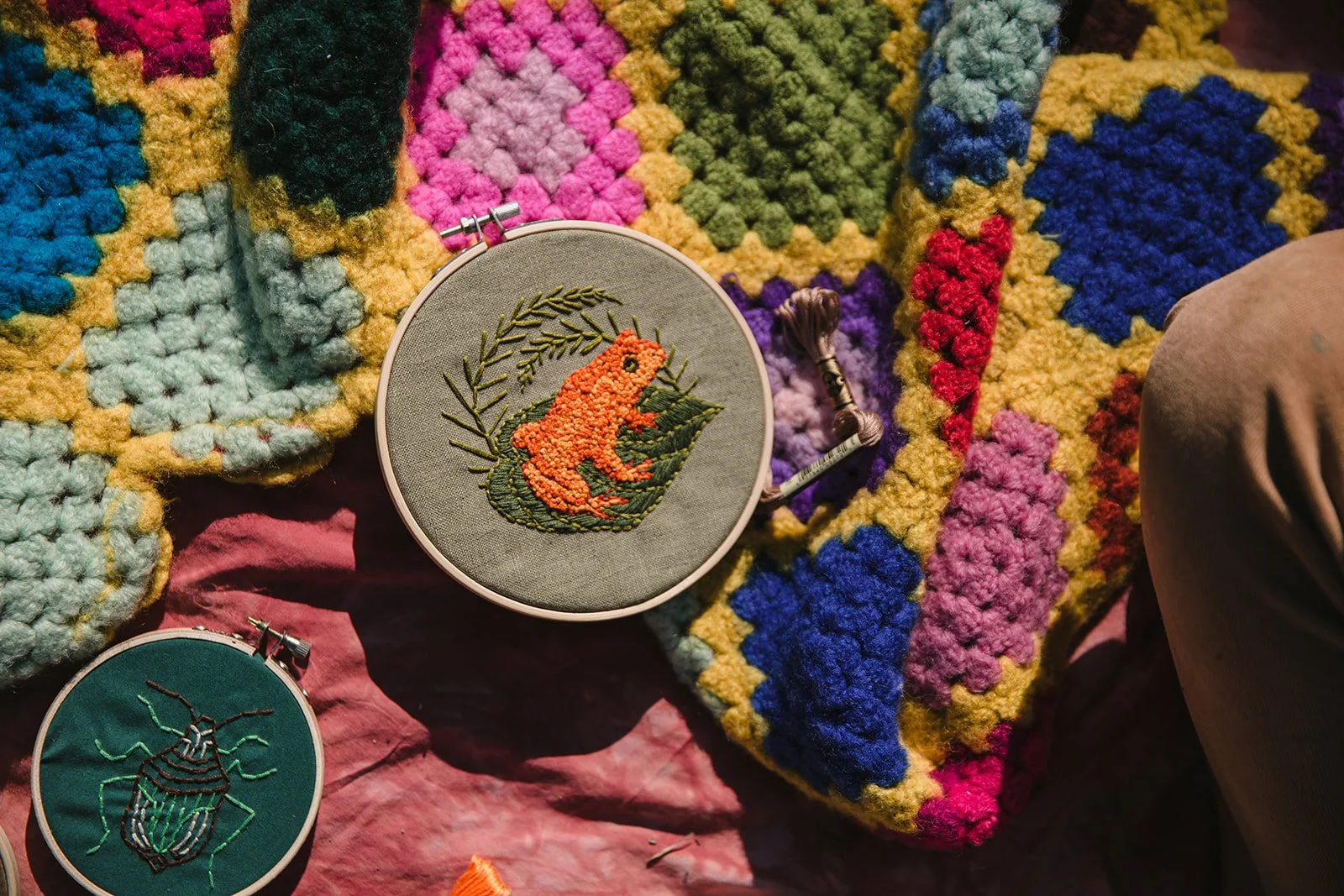 Join Solstice Handmade for a night of stitching and socializing – grab a friend and come learn a new skill with us. We will demonstrate and practice several embroidery stitches, and then use them to begin stitching am image of the extinct Golden Toad. While we stitch, we’ll fill you in on their history- and what happened to them. This class is suitable for beginners and experts, all supplies included.