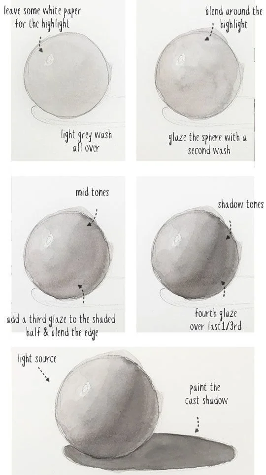 -Begin this step by repeating the wet on wet technique from exercise 2, making adjustments this time to fine tune the color and value placement.
