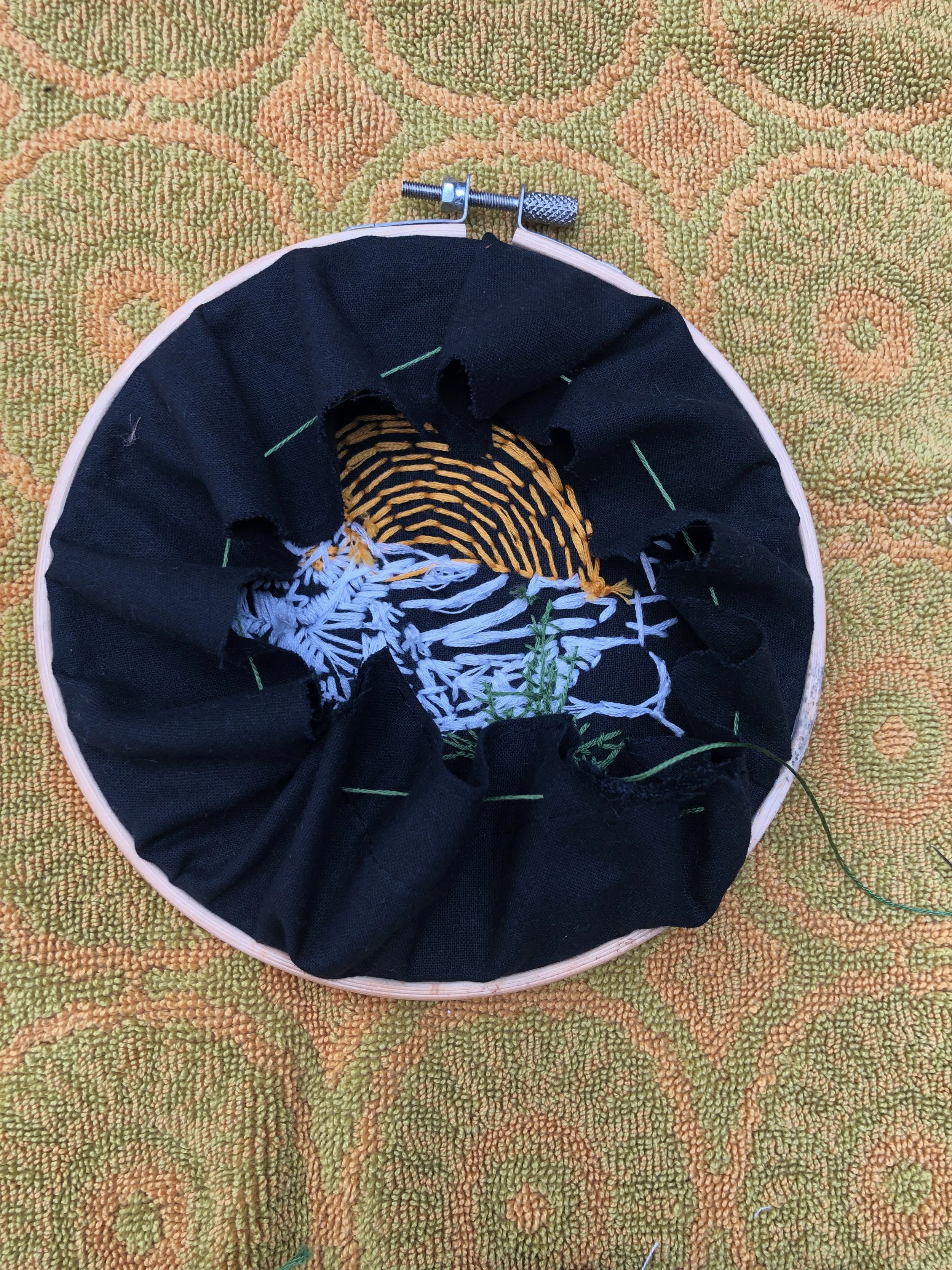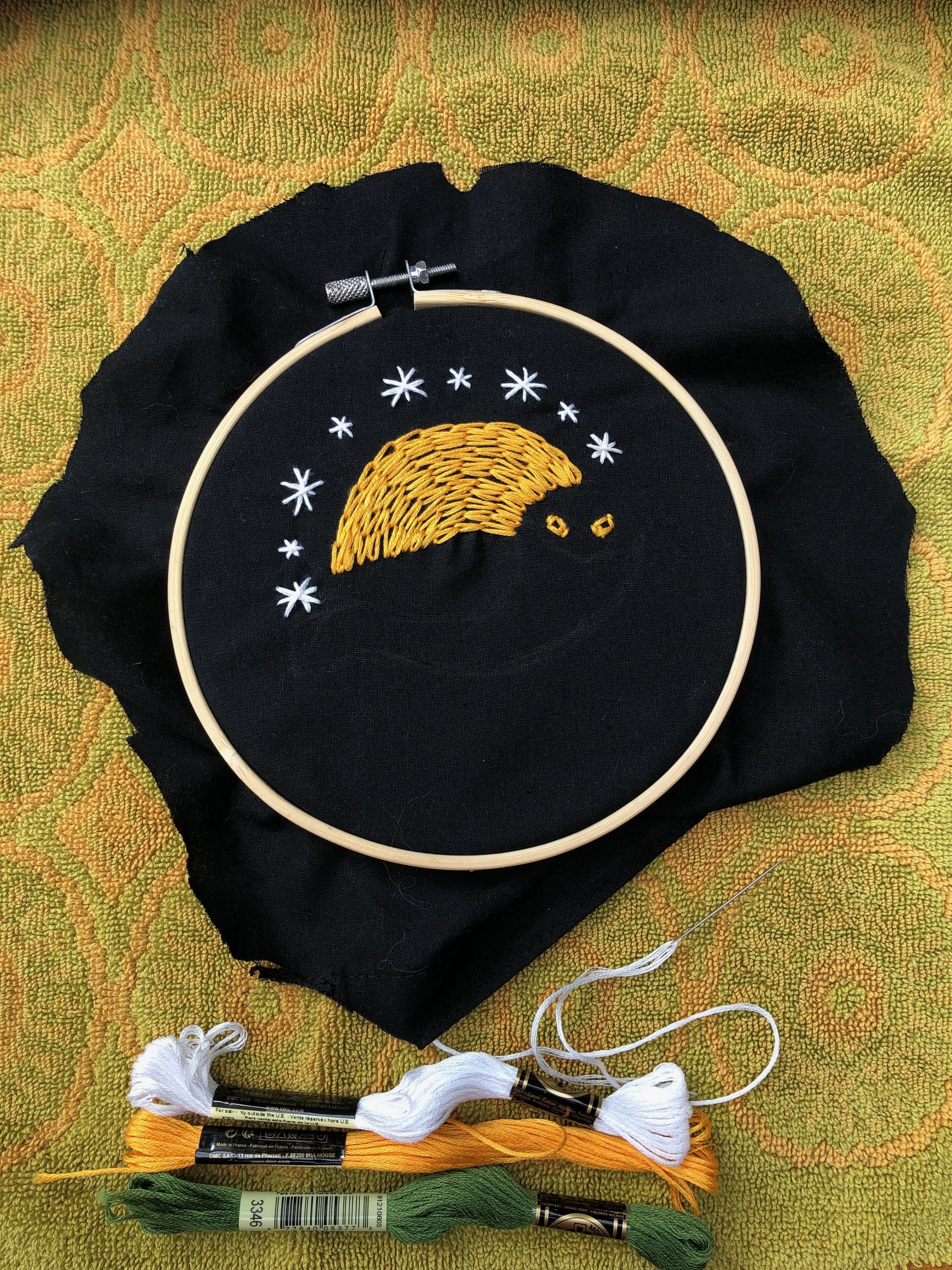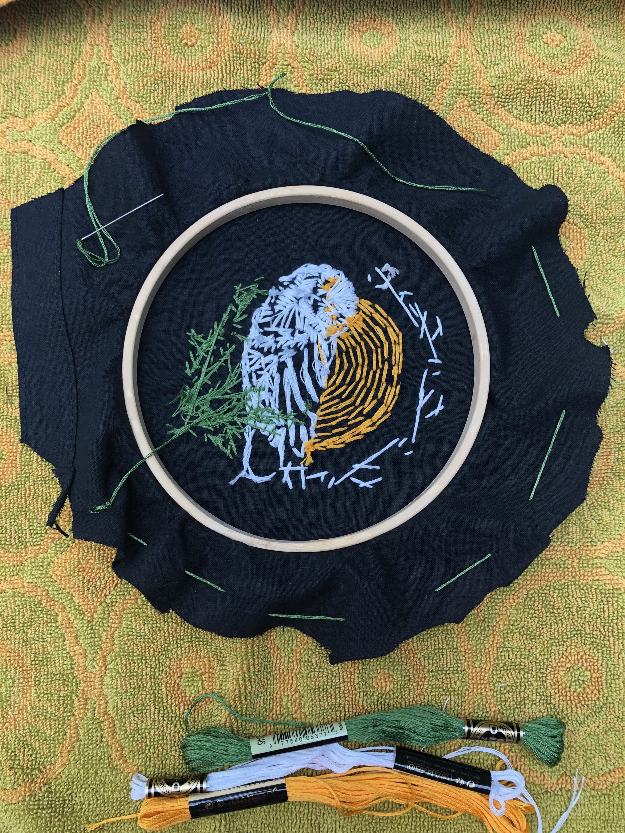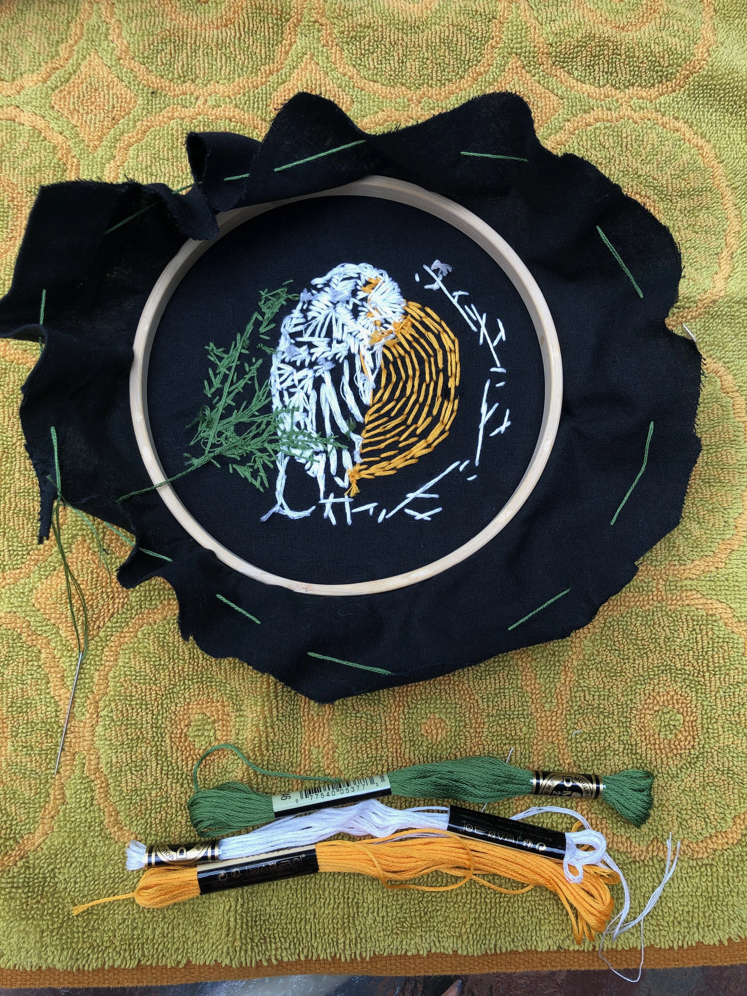 I included black thread incase you would like to go back in and stitch over the bill and pupils of the owls eyes. you can also use this in creative ways like creating a double outline around the owl, adding stars, stripes to its feathers, ect.