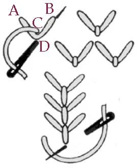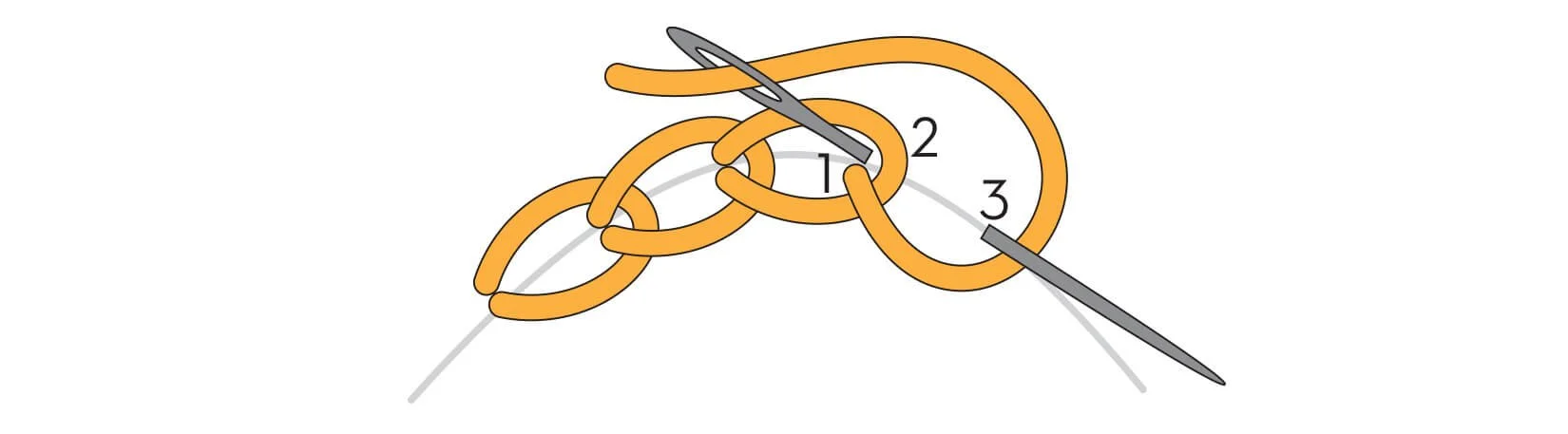 -stab through a nearby stitch but don’t pull thread all the way through, leave a small loop